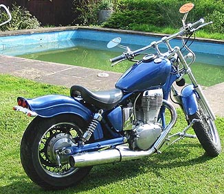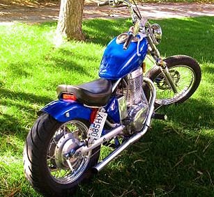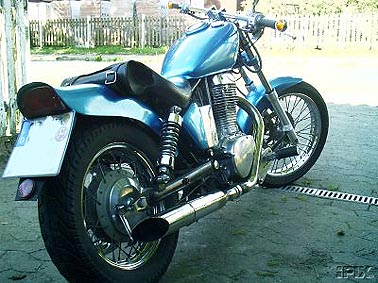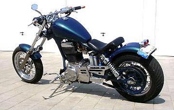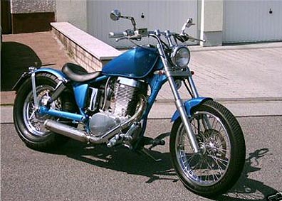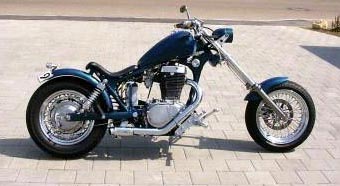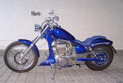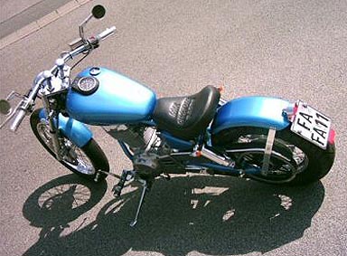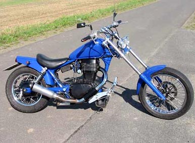 SuperTrapp, Doppelscheinwerfer, gereckte Gabel, Vorverlegte, Lenkerendenblinker, Modifiziertes Heck, Batterie verlegt, offener Vergaser usw. |