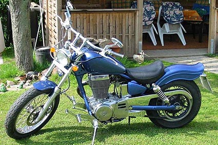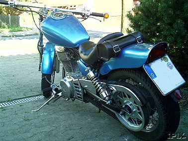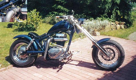 ...nachher. Gewagte Krümmerführung und lange, gereckte Gabel dominieren diese intensiv umgestrickte Maschine. |